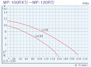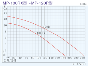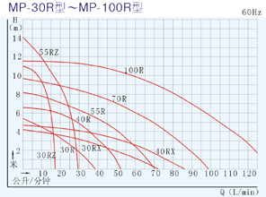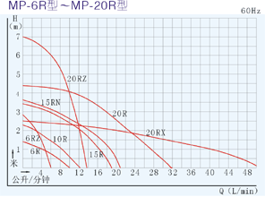 【MP型塑料微型磁力驅動循環泵】性能曲線圖: