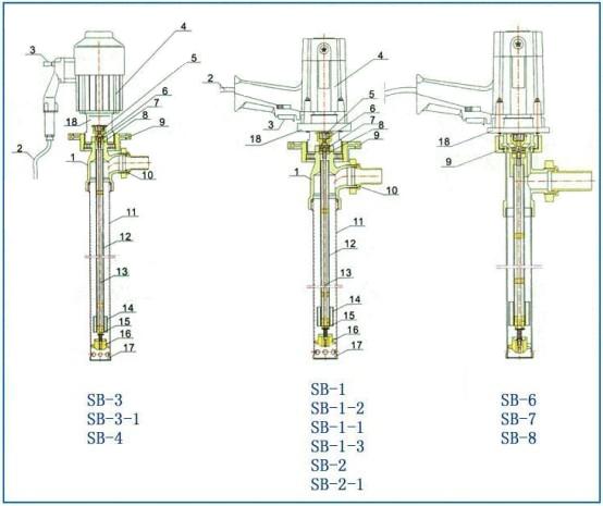 SB型鋁合金防爆電動抽液泵結(jié)構(gòu)圖: