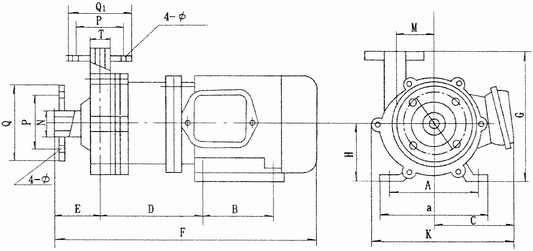 CQF型工程塑料磁力驅動泵安裝尺寸圖: