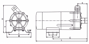 【MP型塑料微型磁力驅動循環泵】安裝尺寸圖: