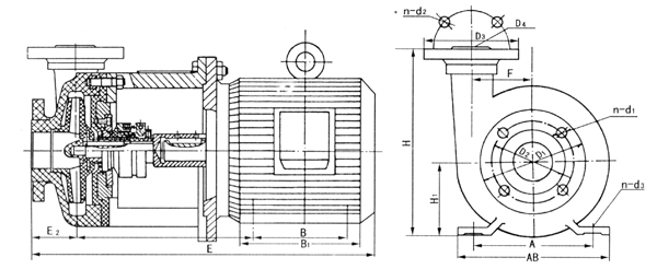 【PF(FS)型強(qiáng)耐腐蝕離心泵】安裝尺寸圖:
