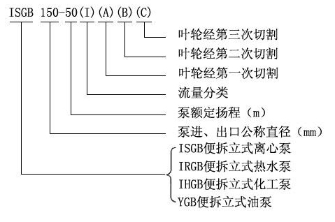 ISGBP型不銹鋼便拆式管道離心泵型號意義: