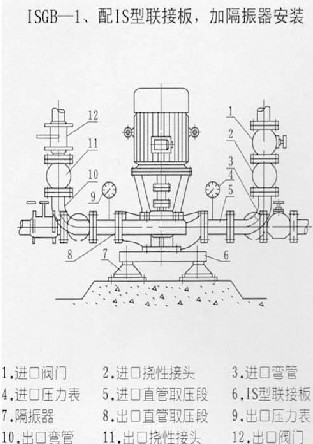 ISGBP型不銹鋼便拆式管道離心泵安裝方式圖: