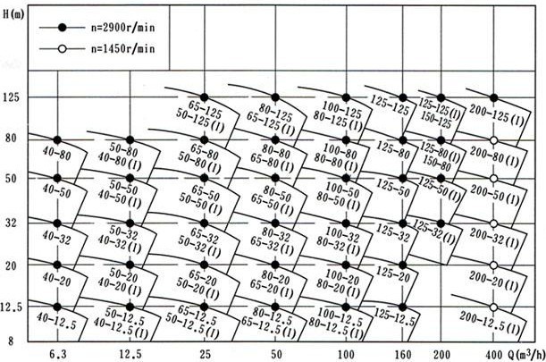 ISGBP型不銹鋼便拆式管道離心泵性能型譜圖: