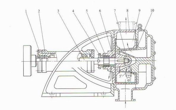 8-泵體(進出口呈水平位置):9-葉輪:10-大蓋