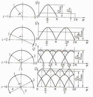 往復泵瞬時流量不均勻系數&Q1、&Q2與缸數、作用數、
