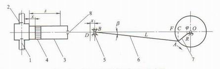 1-吸入閥:2-排除閥:3液缸:4-活塞:5-十字頭:6-連桿:7-曲軸:8-填料函
