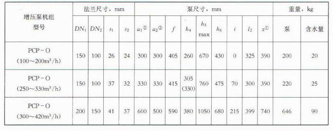 表6-6PCP-O-□□□增壓泵機組主要外形尺寸