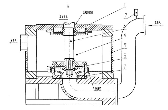 此泵實現一次引流終身自吸的功能,是依靠出水逆止閥的有效關閉和吸入管路上的空氣閥的有效開、閉來實現泵停機時的存液與開機時的自吸。