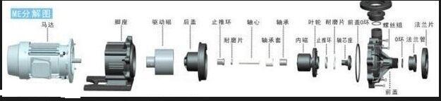 (1)不允許有鐵磁雜質、顆粒進入磁力轉動器和軸承摩擦副。(2)輸送易結晶或沉淀的介質后要及時沖洗(停泵后向泵腔內灌注清水,運轉lmin后排放干凈)、以保障滑動軸承的使用壽命。(3)輸送含固體顆粒的介質時,應在泵流管如口處過濾。