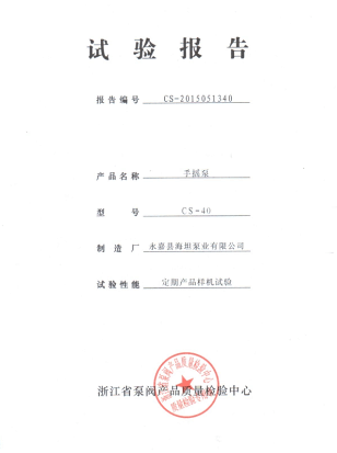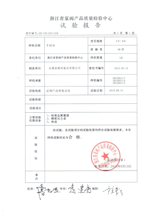 詳細提供手搖泵說明書及檢測報告: