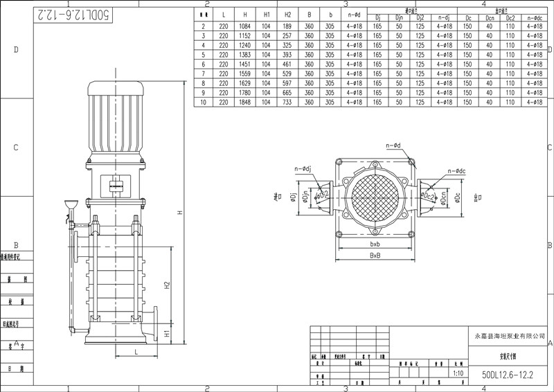 DL立式多級泵旋轉方向從驅動端向下看為逆時針方向轉動。
